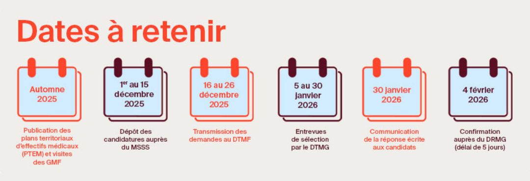 - 1er au 15 décembre 2025 : dépôt des candidatures auprès du MSSS